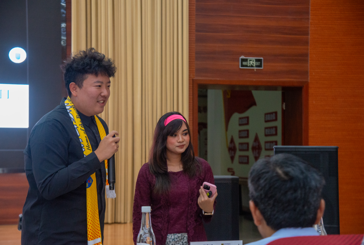 在互动环节,新生们踊跃提问,就关心的话题与代表团成员进行充分交流,展现出对国际化学习体验的浓厚兴趣和积极融入的态度。