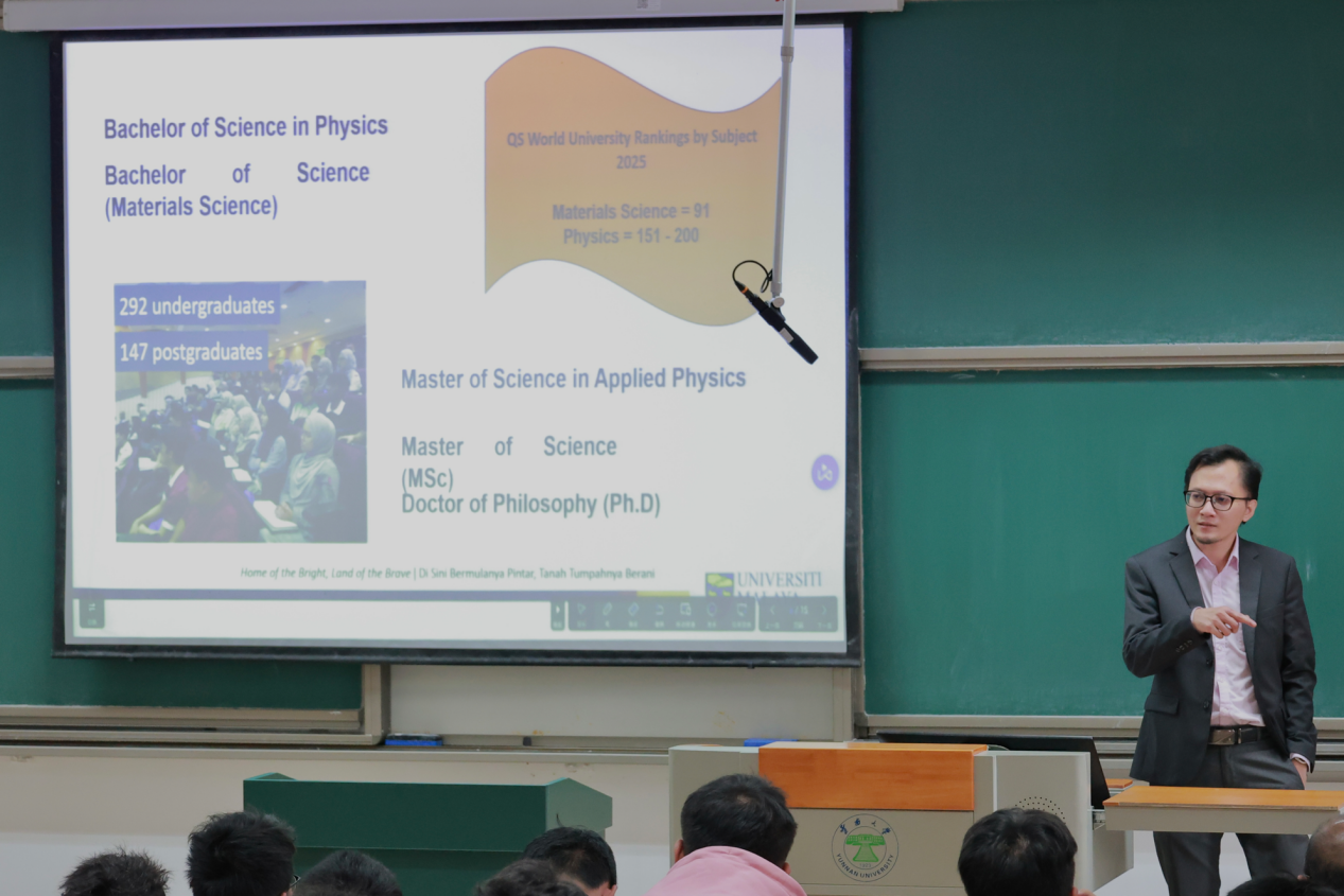 马来亚大学代表团教师以图文并茂的形式,展示了马来亚大学的校园环境、学术氛围、体育活动及特色文化,帮助新生了解、感受合作高校的学习与生活场景,加深对中外合作办学内涵的理解。