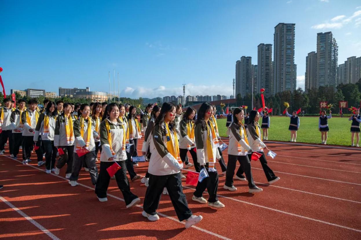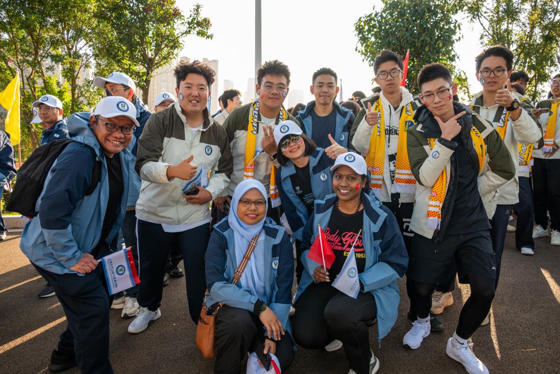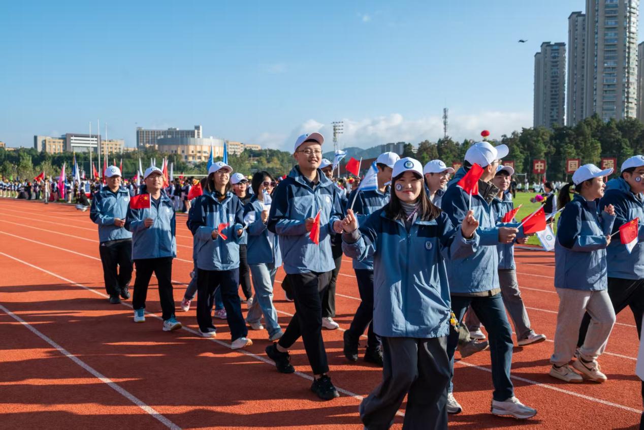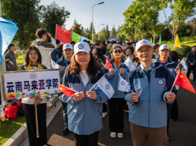 2025年11月13日清晨,呈东体育场上旌旗招展,气氛热烈。作为云南大学国际化办学的一张熠熠生辉的“新名片”,云南马来亚学院的首届师生组成整齐的方阵,中马两国老师并肩阔步前行,以“新人”之姿自信亮相赛场。首届学子齐声喊出“首聚赛场,各展其长;际会于此,竞放锋芒”,声音洪亮、气势昂扬。