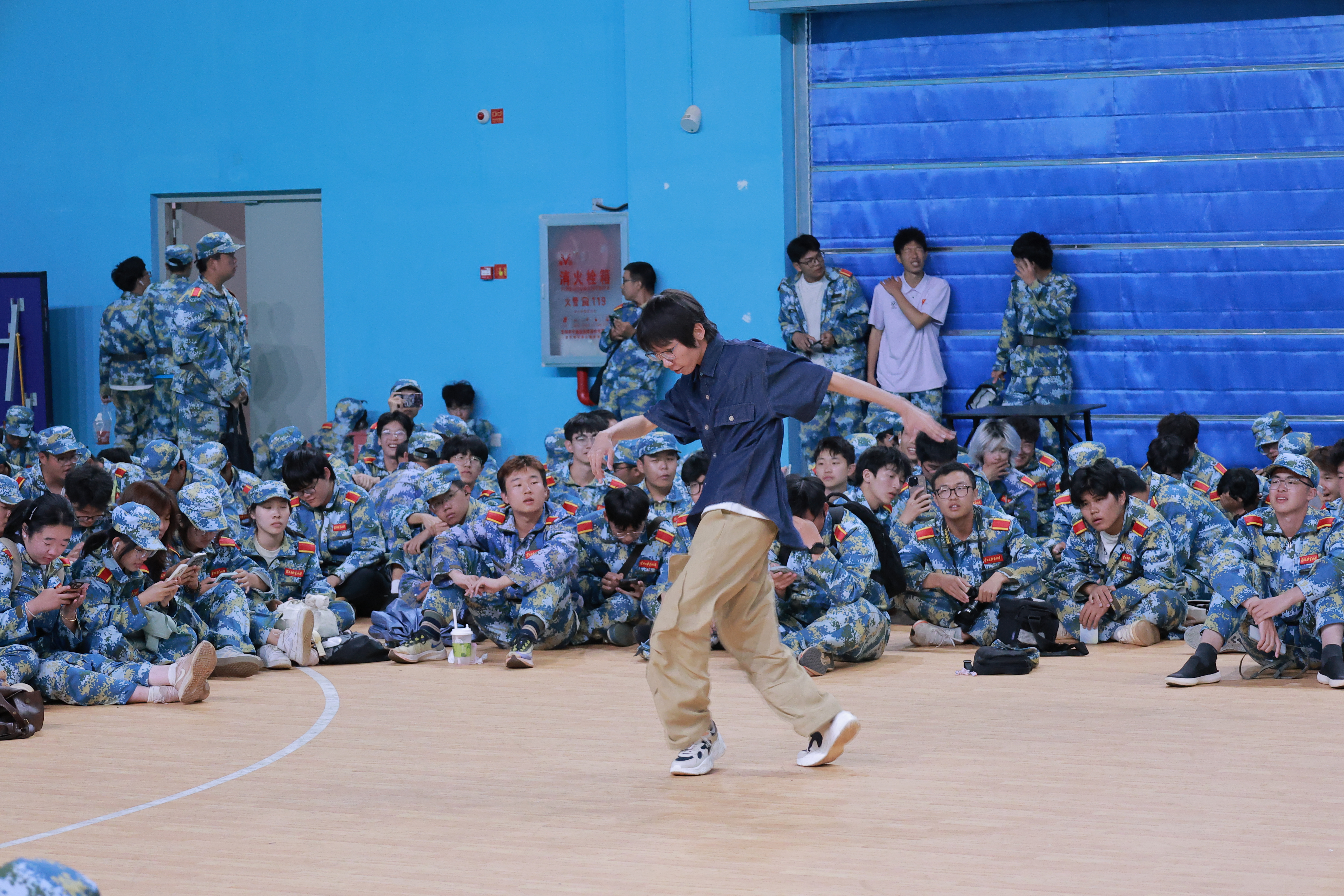 静谧未远,节奏忽转。纪然同学带来的舞蹈Wake以强劲的节拍与极具爆发力的舞姿,瞬间点燃全场气氛。她的每一个动作都精准有力,眼神中闪烁着坚定与自信。汗水浸湿发梢,却更添几分飒爽英姿。舞台上的她,与训练场上那个坚持不懈的身影完美重合,展现出青春特有的韧性与光芒。这不仅是一场视觉的盛宴,更是一次青春的宣言:我们既能经受军训的锤炼,亦能在聚光灯下绽放光彩。