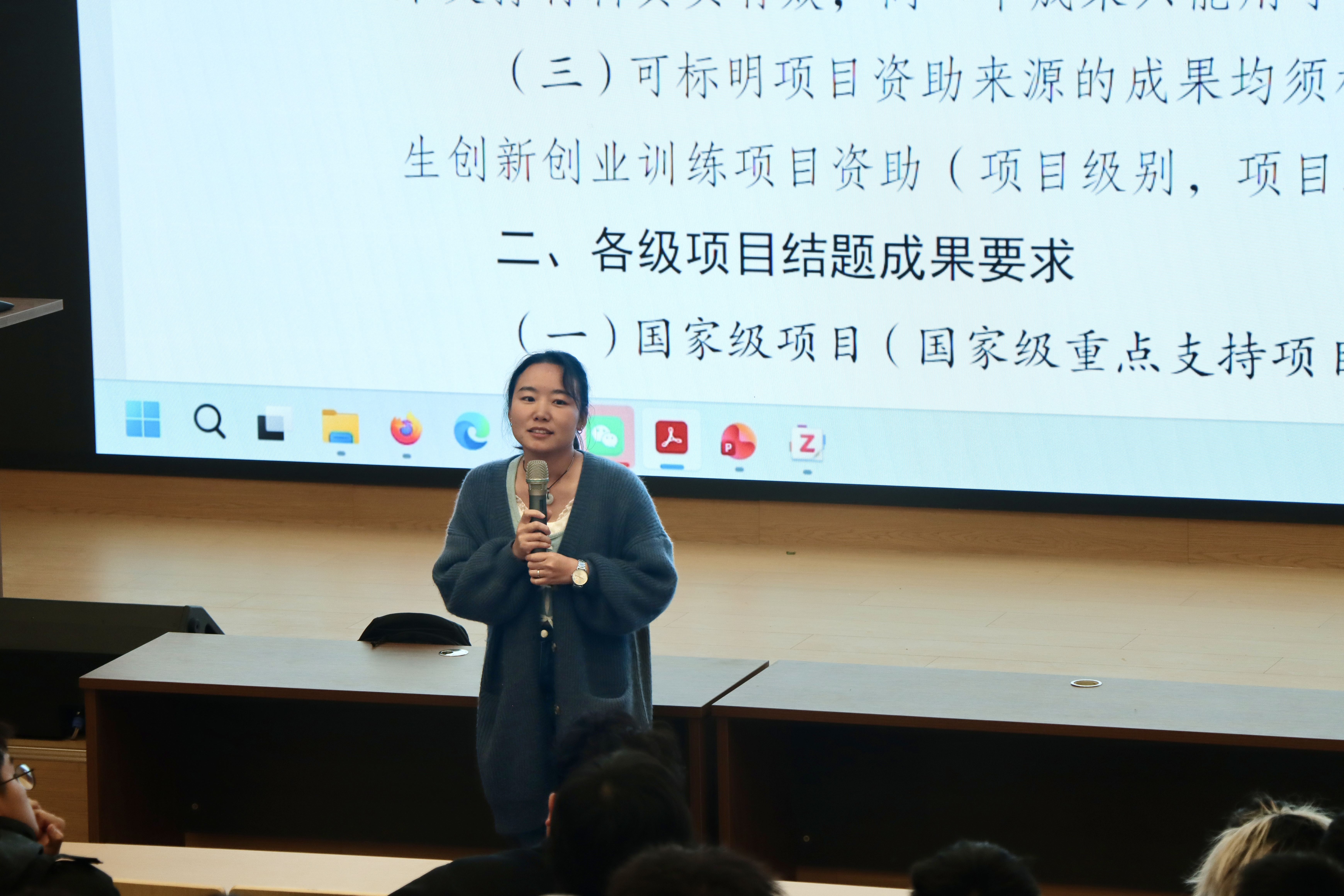 张雨潇老师从项目整体分类到各类项目的核心定位,从参与规则到时间规划,用通俗易懂的语言拆解科研入门的关键要点,让同学们清晰认识到“大创”项目在保研、就业及科研思维培养中的重要作用,鼓励同学们打破专业壁垒,积极开展跨领域项目合作,努力提升自身的实践动手能力。同时,也提醒同学们关注时间节点,合理规划项目周期,避免因节奏不当影响成果产出。