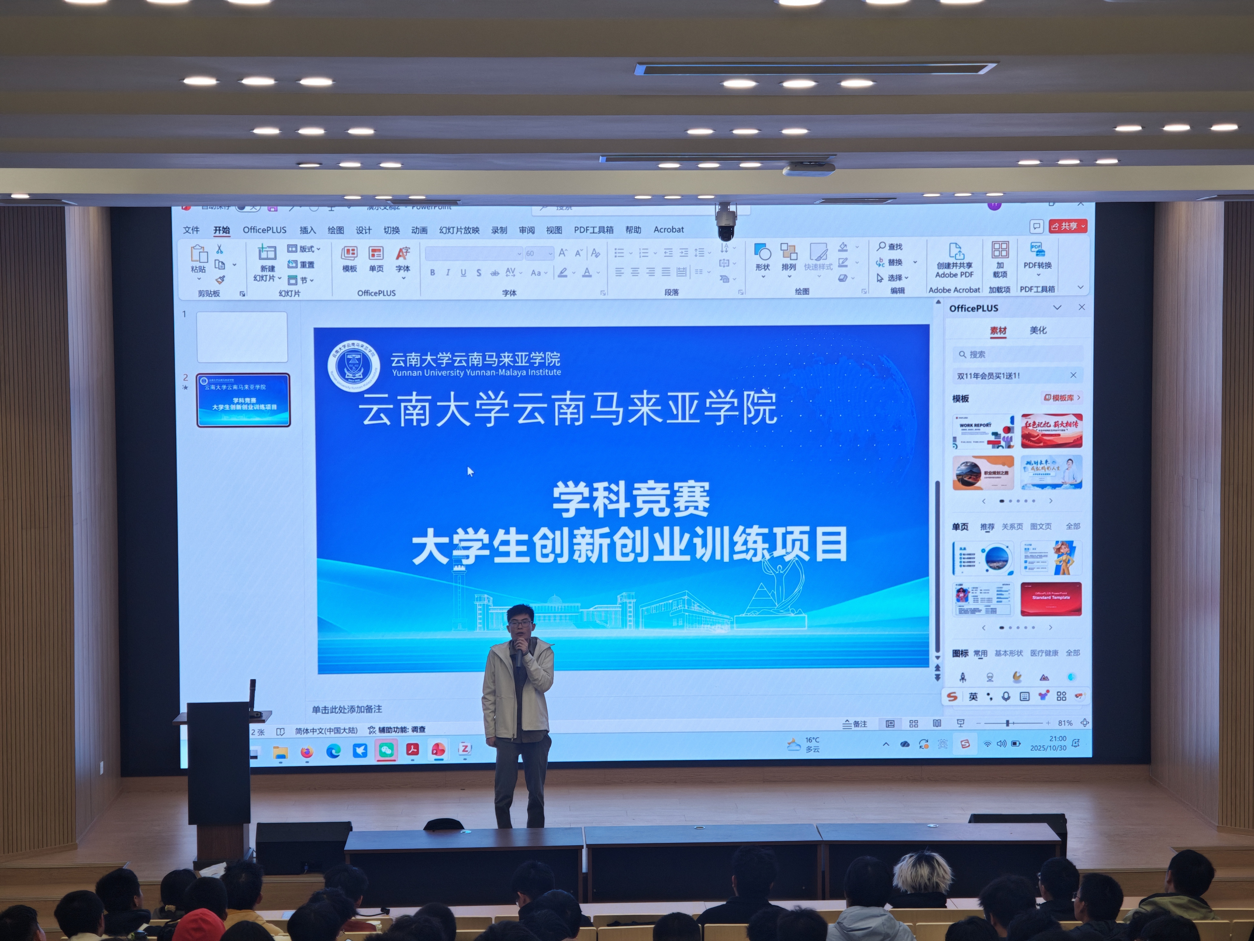 为提升同学们对大学生创新训练项目的认知,云南马来亚学院于2025年10月30日晚举办了“大创”项目专题分享会。“大创”,全称大学生创新训练项目,是高校为培养学生创新能力和实践能力设立的实践项目,以学生自主选题、设计方案并完成研究或实践活动、导师提供指导的形式为核心。