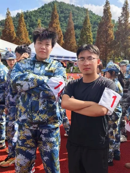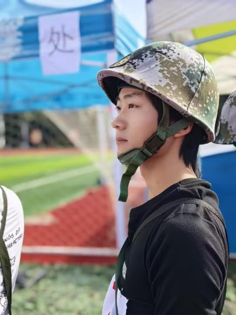 赛场边,一群佩戴鲜红“工作证”的同学格外醒目——他们是亮剑先锋队。身着戎装,他们早在赛前便投入场地布置,校对立杆、归置弹药箱,手心沾满道具的灰尘。比赛开始,他们手持计时器、递送补给、记录数据,无任务时依旧笔挺伫立,军姿如旗杆般挺拔坚定。我院谭欣然同学亦在其中,成为赛场边一道无声而可靠的力量。
