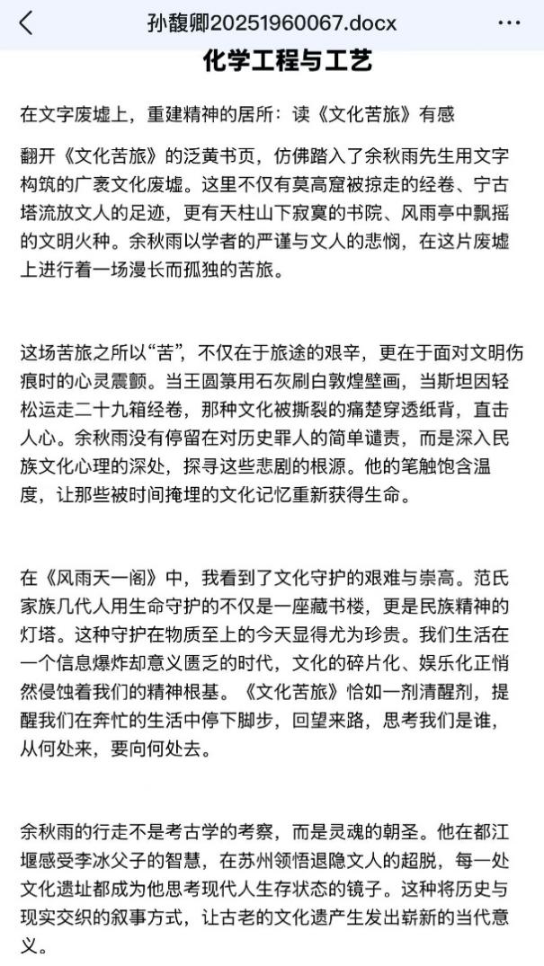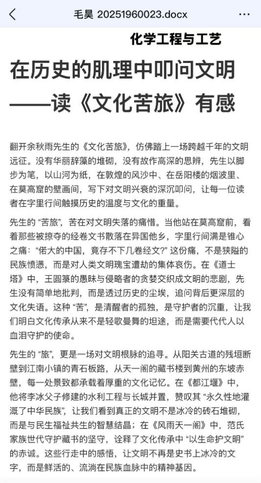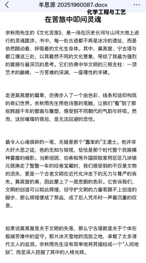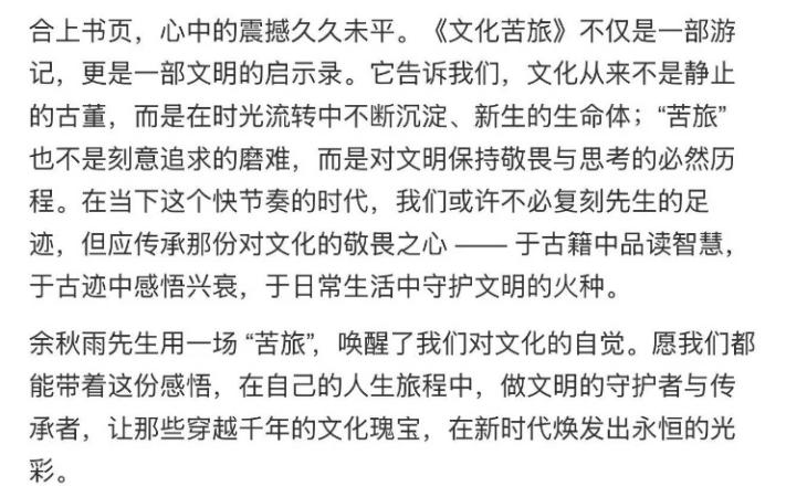 “读《道士塔》时真的破大防了!”毛昊同学激动分享,“那种文明被割裂的痛,隔着文字都能感受到,余秋雨老师是真的懂怎么让人共情!”
