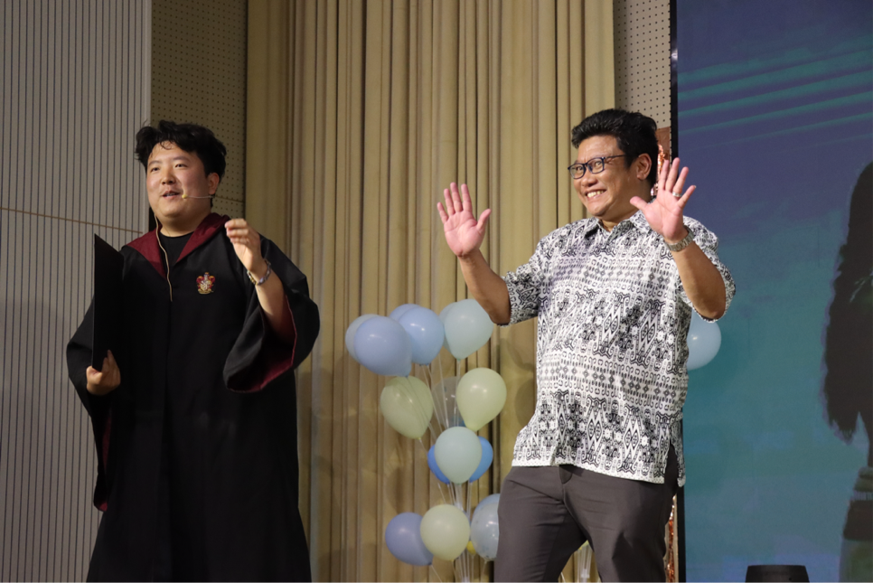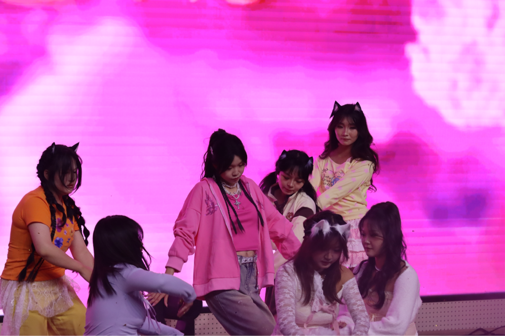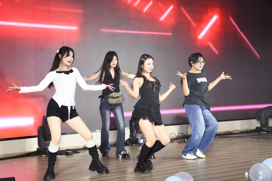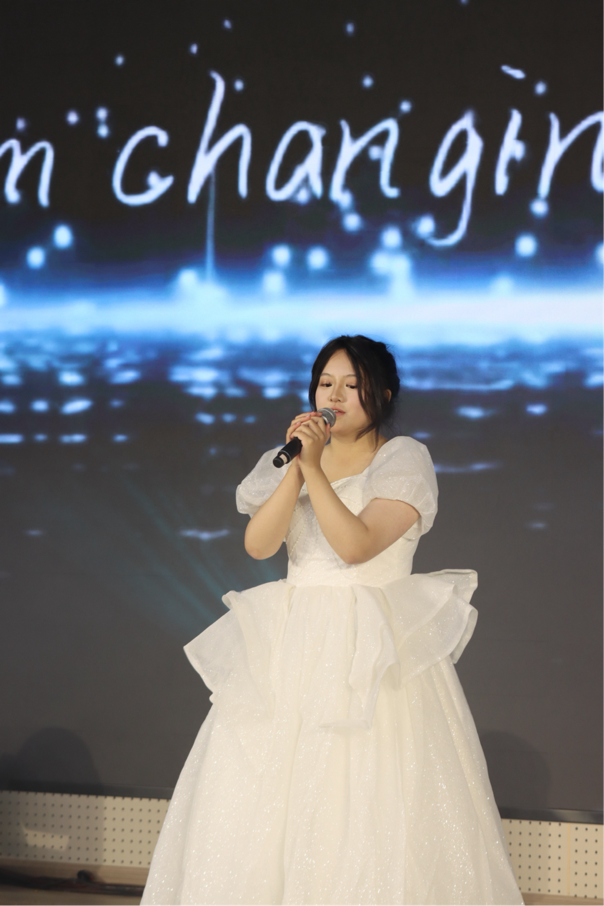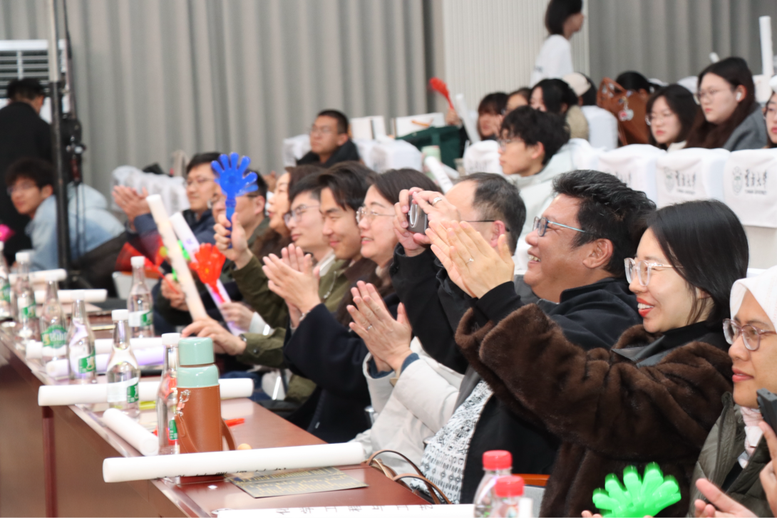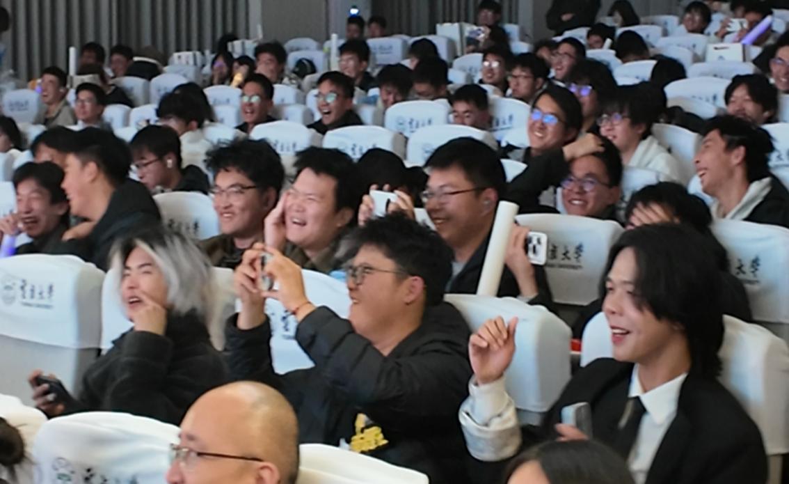 陌生在活力中褪去,热爱于共鸣中登场。第二篇章“青春同频·语通世界”精彩纷呈。学院学生会文艺部舞蹈队以舞蹈串烧《TEN PERCENT》瞬间点燃全场热情;学院团委组织部带来小品《谁杀死了周日》,以密集笑点精准戳中校园生活的趣味日常;单叙潼、苏欣颐联袂带来经典歌曲《Love the Way You Lie》,二人默契对唱,将歌曲的韵味娓娓道来;学院学生会科创部带来温情合唱《金鹰卡通》,唤醒了所有人的童年记忆;学院青年志愿者协会带来朗诵与合唱相结合《青春有你》,将公益初心与青春担当娓娓道来,为篇章画上温暖句点。同时,篇章尾声设置猜词游戏环节,台下观众踊跃抢答。