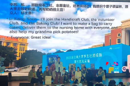 在“初遇云大・心启 YMI” 篇章,将初见的美好瞬间悉数定格。辅导员与樊星、刘周桐、冉济铭、邱昶岳、尹思恬、苏欣颐、高梓涵、李佳聪、欧阳天一、刘梓灏齐声合唱《海阔天空》,旋律激昂唱响了并肩追梦的青春力量;学院团委新媒体中心带来小品《社团招新离谱大作战》,诙谐演绎并还原了校园社团招新的趣味百态;闫语恬、罗建茗演绎的《暮色回响》与欧阳天一演绎的《天后》,勾勒出了青春的悸动与未来期许。篇章尾声,分别对 2025 年学院职业规划大赛获得一二三等奖的同学进行了表彰,荣誉时刻,为梦想加冕。