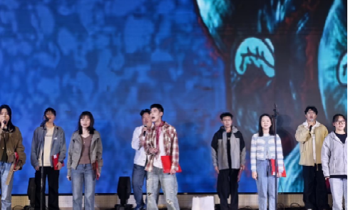 当晚会步入“筑梦同行•共绘未来”的终章,一幕幕动人演出依次展开。学院文艺部话剧团以《听见﹣八十载》带我们聆听岁月深处的回响;晏思涵独唱《我的梦》,清澈歌声托起逐梦的翅膀;刘雨皓、林晨俊、曾志霖和张晟源吉他弹唱《麻雀》,唱出平凡生命里不凡的力量;学院学生会综合部演绎话剧《五四》,激荡起跨越时空的热血豪情。最后,学院合唱团与全体演职人员一同唱响院歌《山海之间 吾辈作答》,悠扬而坚定的旋律,如山海呼应,承载着学院赓续的初心与不灭的热忱。
